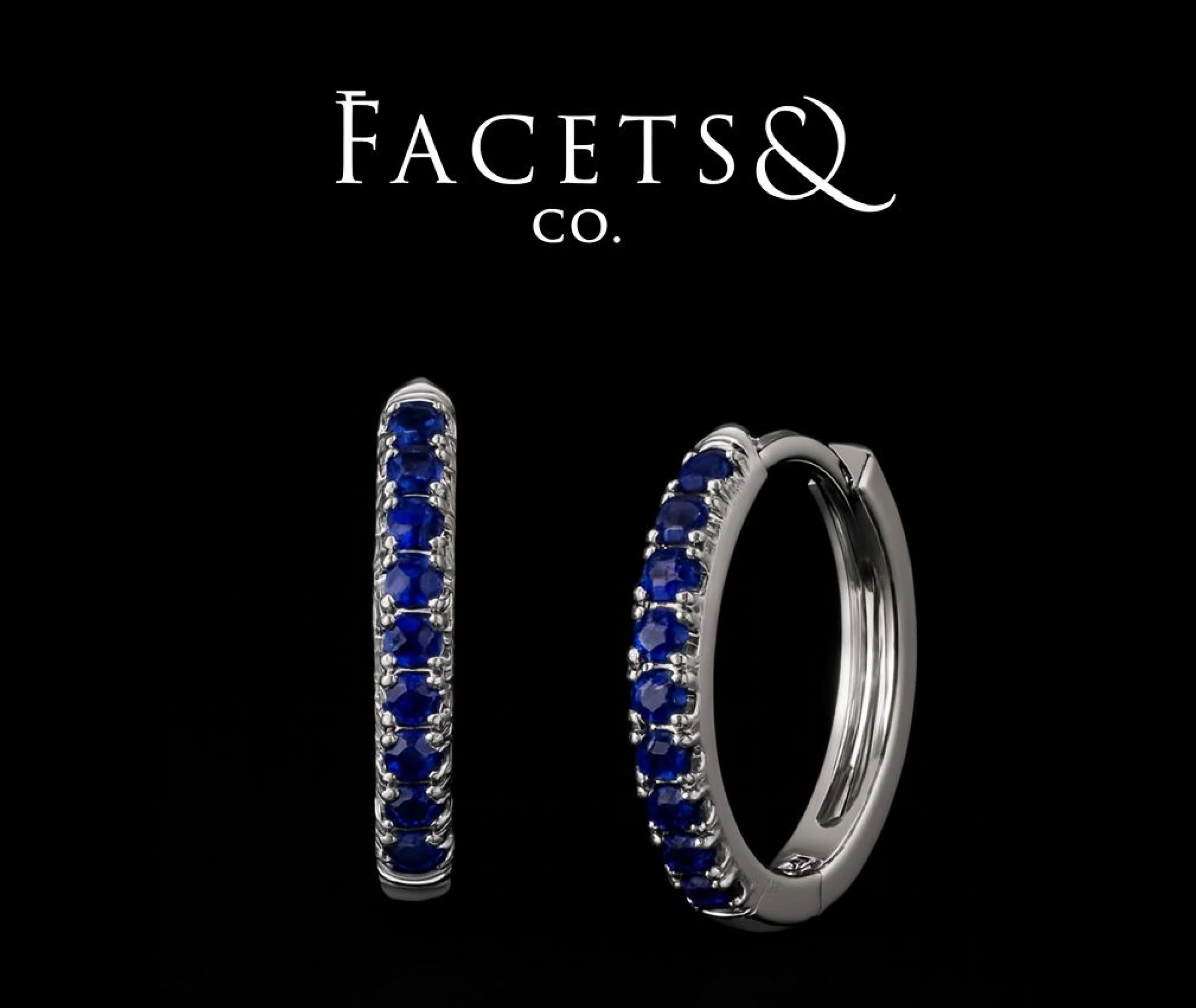 An elegant earring pair handcrafted in 18K white gold, featuring luminous blue sapphire stones. This timeless design captures sophistication, grace, and a touch of serene beauty.