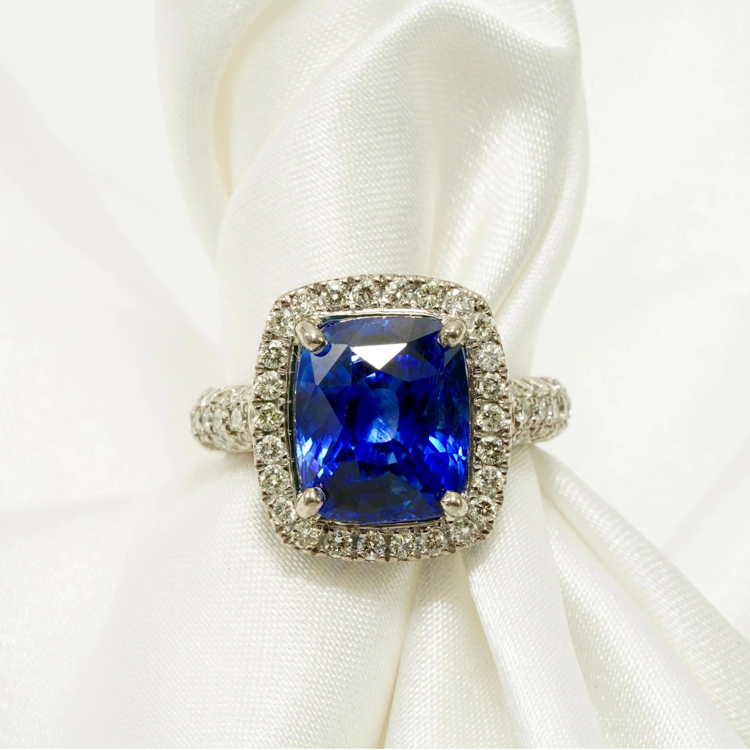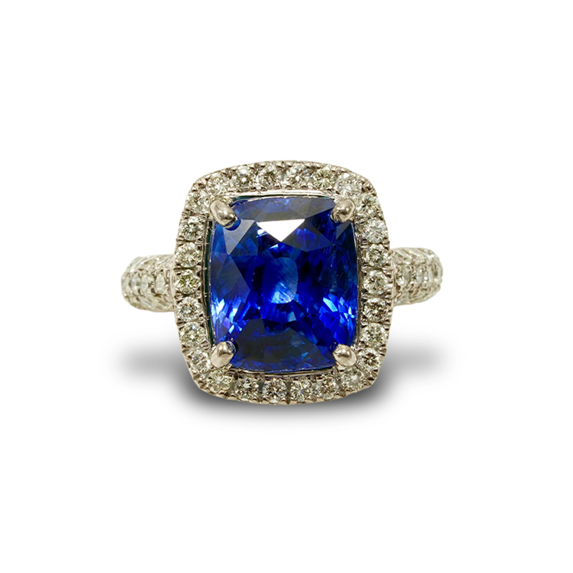 Royal Blue Sapphire Diamonds Halo Ring
